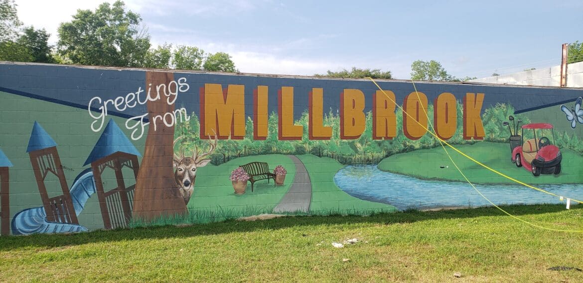 Crews started working on the building recently, taking out two walls, and are working on the building. The first mural in Millbrook is located on the south wall and will be incorporated into the restaurant. It was hoped that more of the building could be saved, but unfortunately age and damage did not make that possible. Big Mike’s owners were adamant about saving as much of the original building as possible.