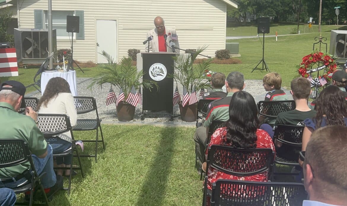 The observance began with an invocation delivered by Rev. Dr. Tyler Cox of Millbrook United Methodist Church, setting a solemn and respectful tone for the morning. Following the prayer, Trail Life Troop 125 proudly led the crowd in the Pledge of Allegiance, a moment that was both heartfelt and unifying.