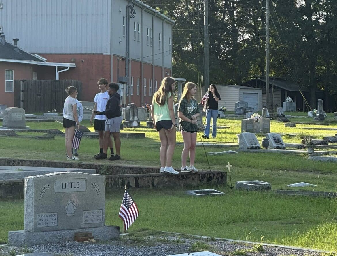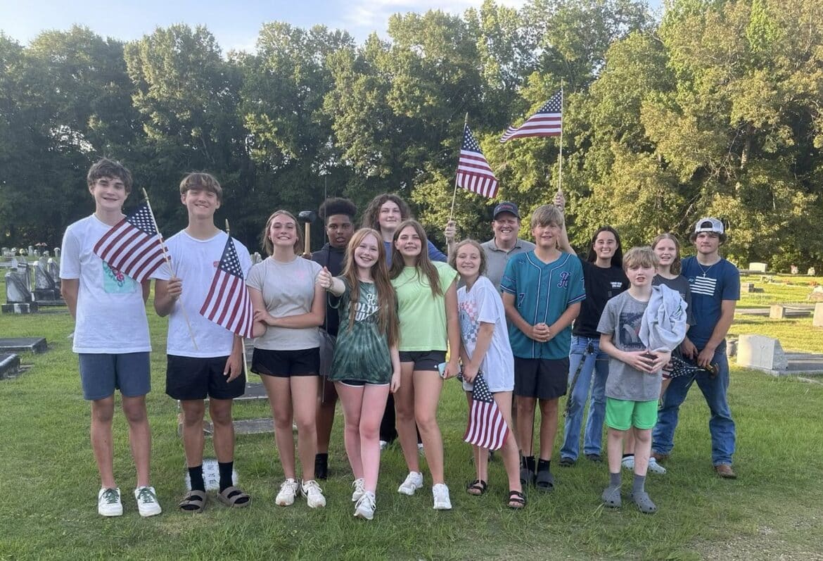 In honor of Memorial Day, the youth group of Cain’s Chapel Methodist Church of Holtville was given American flags to place on graves in the historic cemetery. The flags were provided by American Legion Post 133 of Millbrook and Commander Bobby Boswell.