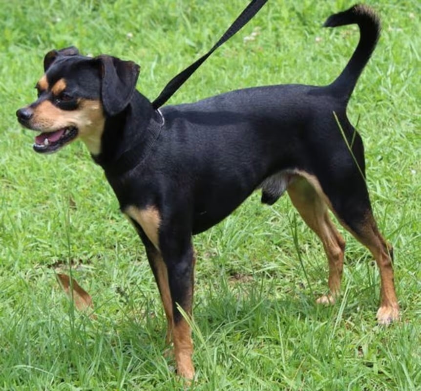 Charlie is a 4-year-old male Chihuahua/possibly Miniature Pinscher mix who has already been neutered. He is an owner turn in because his owner is moving and can’t take him with the family. Charlie has a gorgeous shiny black coat and he has tan markings. He weighs only 14 pounds, so he is a small dog. Charlie would be good with older children; and we feel like he would be okay with other dogs but we do suggest a meet and greet if you have another dog. Charlie is leash trained, house trained and knows the commands ‘sit and shake’. This spunky guy is ready to fill your home with joy as he prances about and shows off.