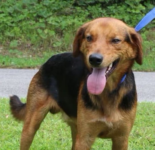 Grin is an 11-month-old male Shepherd mix who must be neutered before adoption. He came to PAHS as a stray and no owner claimed him. Grin’s coat is black with brown markings; and he is so handsome! He weighs 41 pounds; and, truth be told, he needs to gain a little weight. Grin is just as happy go lucky as can be! He is laid back, gentle, and very sweet. Grin would be great with kids and other dogs.