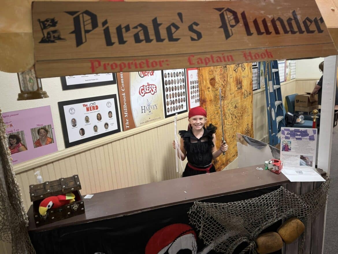 As for this production, from the Millbrook Theatre website: “This panto-style re-imagining of J.M. Barrie’s classic book focuses on Wendy’s transition from a child to a responsible young lady — with plenty of adventure in between! When Wendy refuses to leave the nursery and sleep downstairs, her mother gives her a mysterious box containing Peter Pan’s shadow. Unable to resist, Wendy opens it, Peter arrives, and they’re off to Neverland! But even there, Wendy must learn what it means to grow up. Full of enchanting music and beloved characters, this fast-paced adaptation of Barrie’s Peter and Wendy is a treat for children of any age.” ~ Playscripts