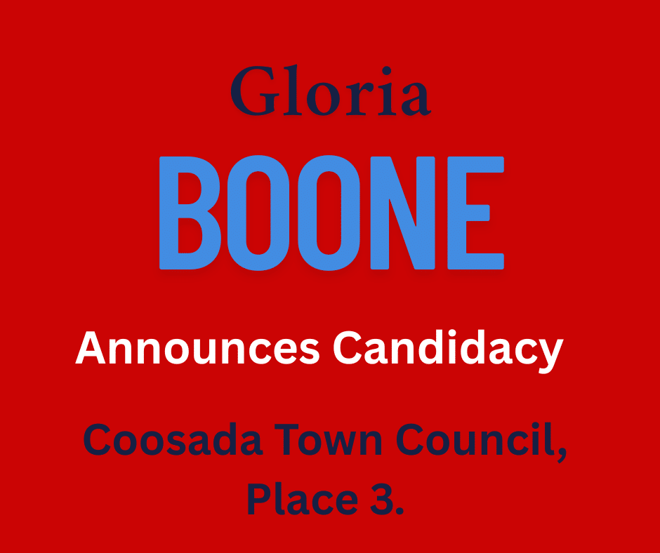 From Gloria Boone – Candidate for Coosada Town Council, Place 3