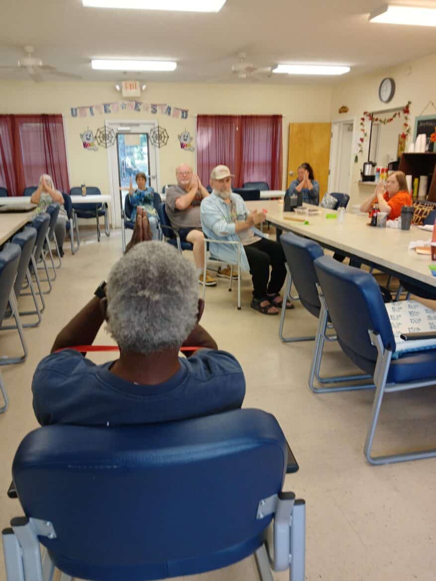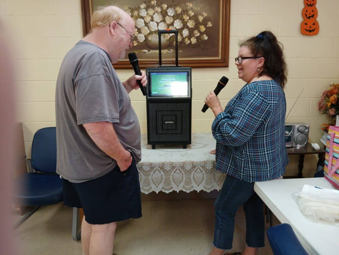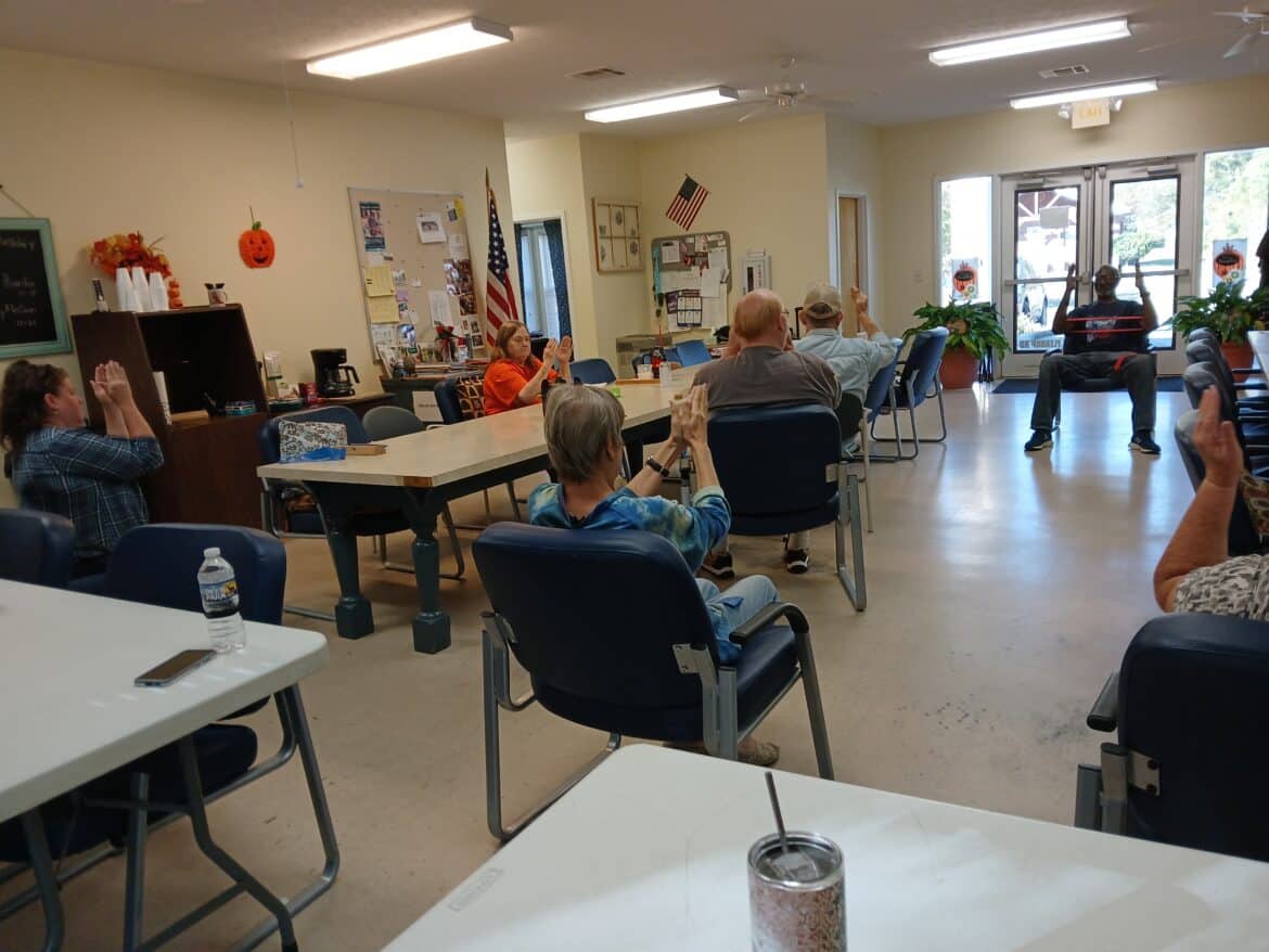 See photos below including karaoke, exercise class, and card games. Karaoke features Robin Nummy and Greg McCain. Exercise shows Mr. Willie Toney at the head of the exercise class. Other pictures are of various people playing cards and visiting at the Eclectic Senior Center.