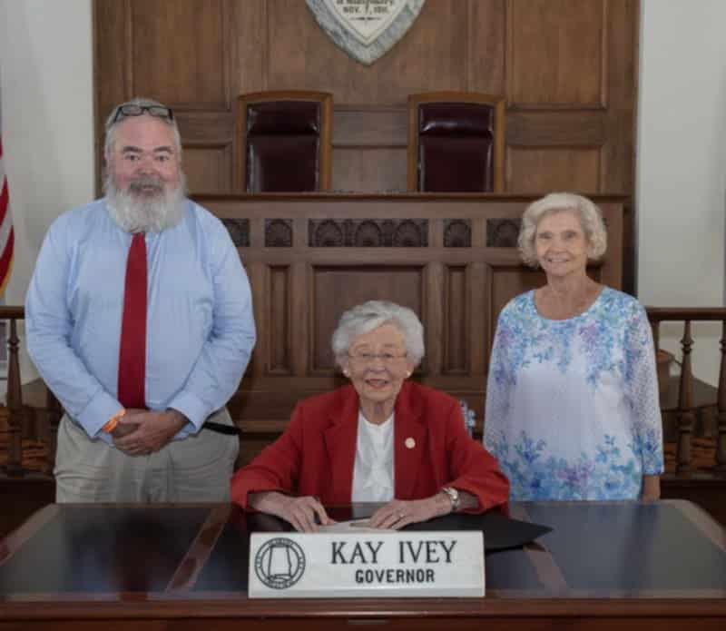 In the photo with Gov. Ivey are school bus drivers Faye Wyatt and Christopher Hall.