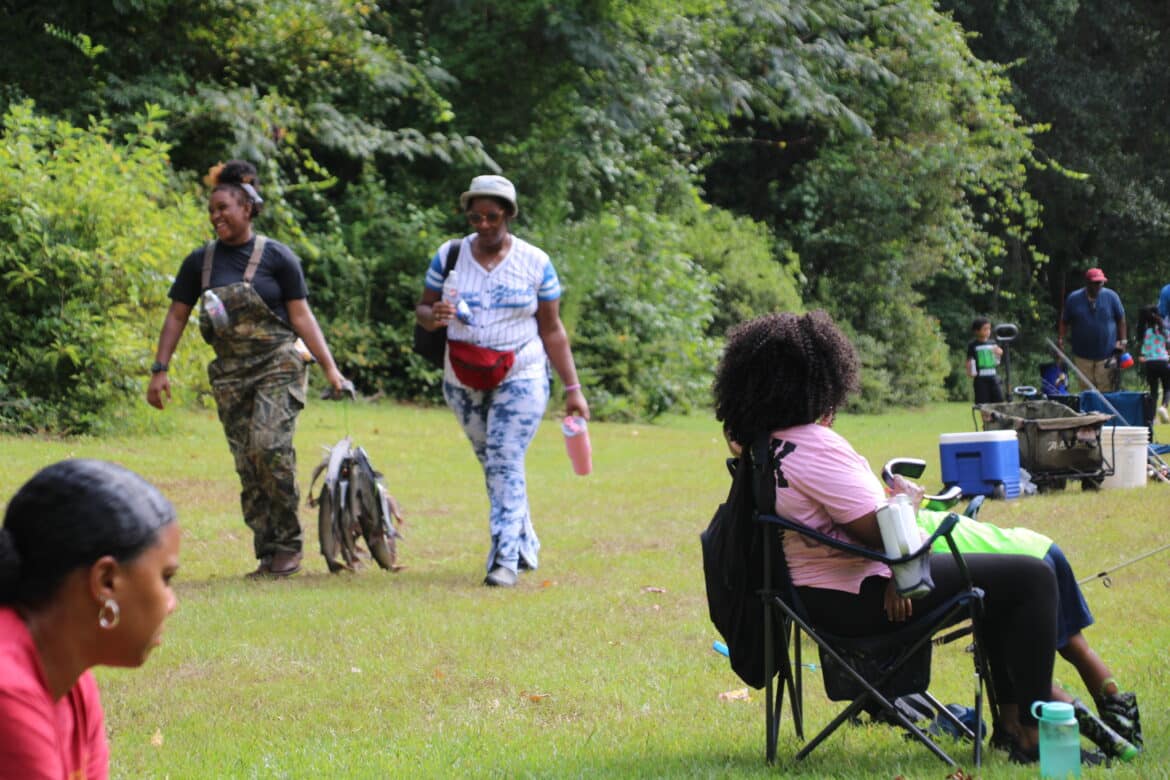 This morning the fishing was great, and the youth fishing, watched closely by family members, seemed to enjoy it all.