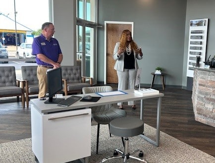 Dr. Spina then introduced his partner, Dr. Rose, as she addressed the crowd in welcoming everyone to Premier Eye Associates. Dr. Rose started out by saying, “We are so, so excited! Dr. Rose continued on to say, “I just want to thank God for this opportunity to do what I love so much in this community that has embraced me.”
