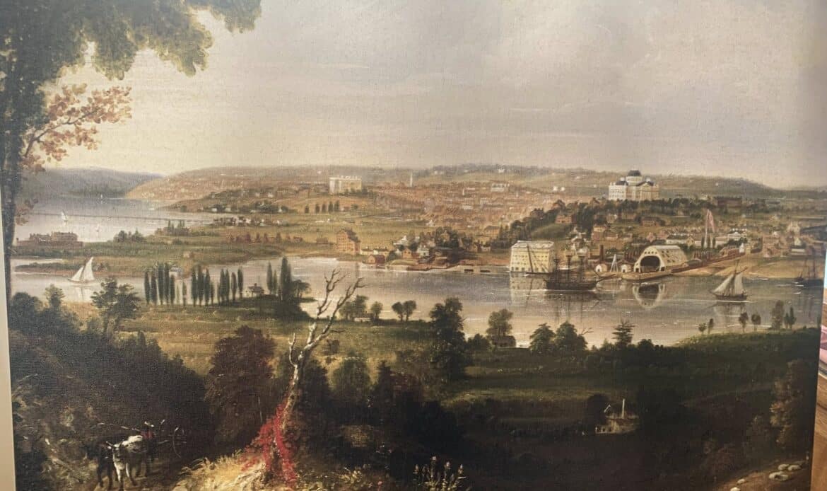SOUTHERN ART THROUGH THE AGES displays the little-known art that is connected to Prattvilleโs rich history. In the 19th century, Daniel Pratt built an art gallery onto his house. Here he featured paintings by George Cooke among an other artists. On view are reproductions of Cookeโs paintings, “The View of Washington from the Naval Yard,โ which is now found in the White House Collections and โThe Interior of St. Peterโs Cathedral,โ (17ft x 24ft!) located in the Chapel on Old Campus of University of Georgia. Cooke also was employed by McKenney-Hall to paint nine of the Native-American chiefs when they came to Washington, DC to negotiate the transfer of land (two are on display).