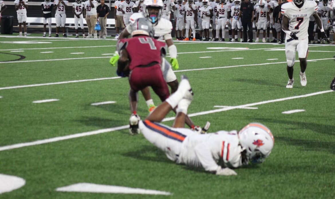 The first offensive play Percy Julian had the ball, they threw a backwards pass that landed on the ground and was recovered by Jacob Tharpe for the Mustangs. Barnes had a 24-yard touchdown moments later and John Espy converted the extra point, going 5-5 on the night, to complete the scoring with a 40-0 victory.