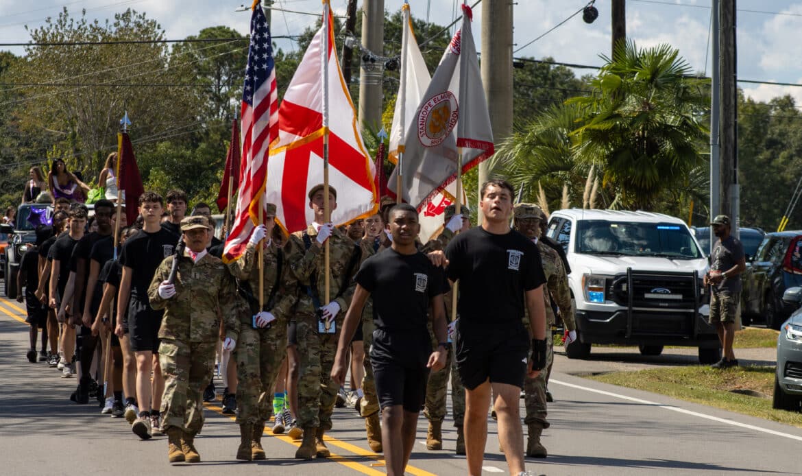 The celebration kicked off with a lively parade featuring the JROTC, homecoming court, cheerleaders, band, football team, and school clubs. The procession began at the high school, moved down Hampton Oak Road, and continued along Main Street before turning onto Chapman Road.