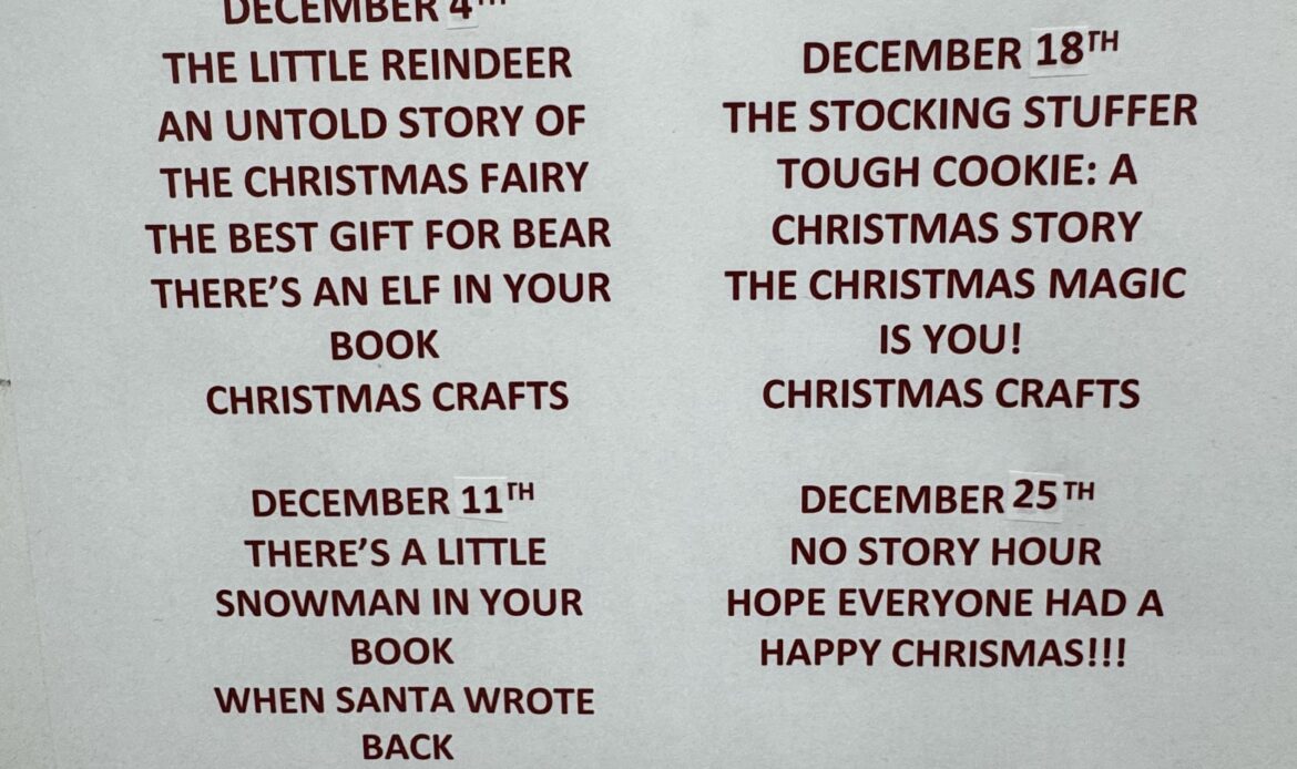 On Thursday, Oct. 30th, 2025, the Millbrook Public Library had its weekly story hour. This week, children dressed up in their Halloween costumes for the story hour and trick-or-treated around the library.