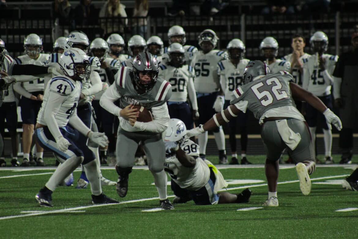 The Mustangs’ Jay Stone returned the opening kickoff for a touchdown. After holding the Eagles to a 3 and out, the Mustangs got the ball with good field position, and in four plays running back Dee Barnes scored to put the Mustangs up 14-0 just four minutes into the game.