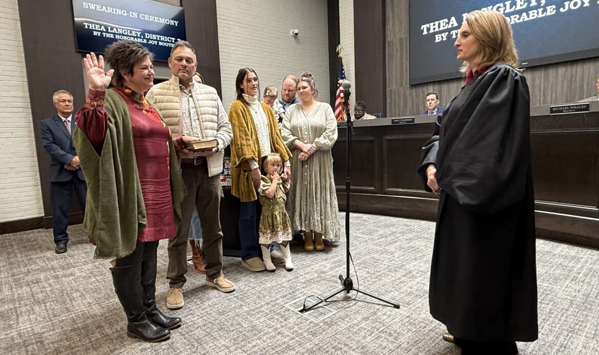 Two newly elected council members, Thea Langley and Wade Newman, will serve their first terms on the council. The Honorable Jay Thompson, Autauga County Commissioner, administered the oath of office to his cousin, Newman, who represents District 1. The Honorable Joy Booth, Circuit Judge of the 19th Judicial Circuit, administered the oath to Langley, who will represent District 7.