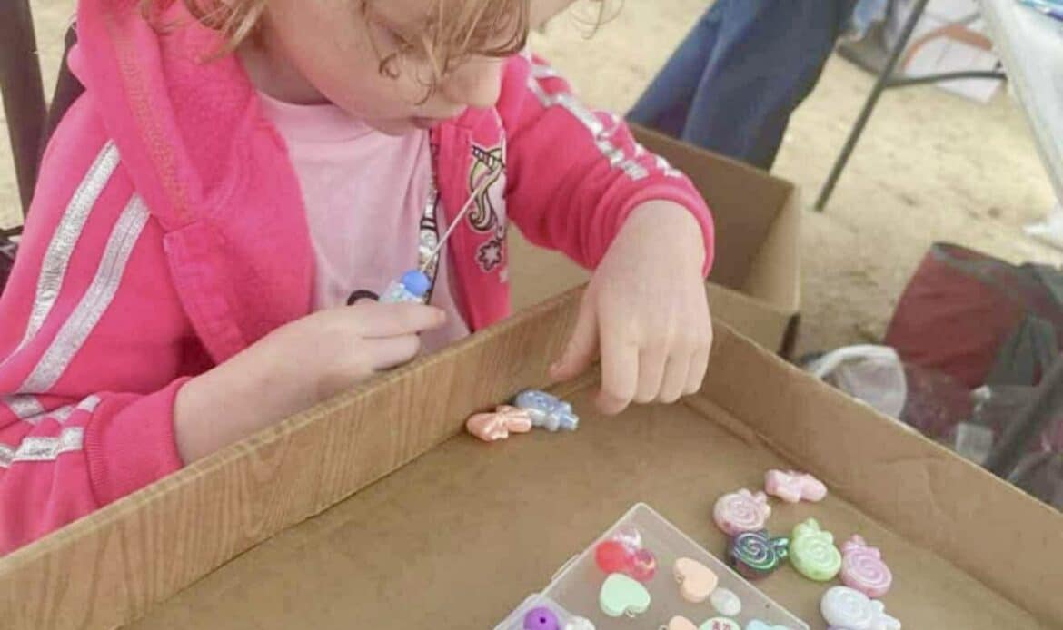 โI make keychains, badge reels, and bracelets,โ said Amara. โPink is my favorite color, but I make all colors.โ