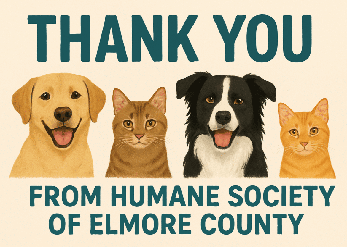 Those of us in shelters also have many people to be thankful for such as our dedicated volunteer board members, our dedicated dog exercisers and all those volunteers who make our Tail’s End Thrift Store such a success. Our foster families are a beloved extension of our staff as they help us care for even more pets in their own homes, providing love and a great start to successful adoptions. We greatly appreciate the partnership we have with animal control officers who work diligently protect the public and help animals in need throughout Elmore County.