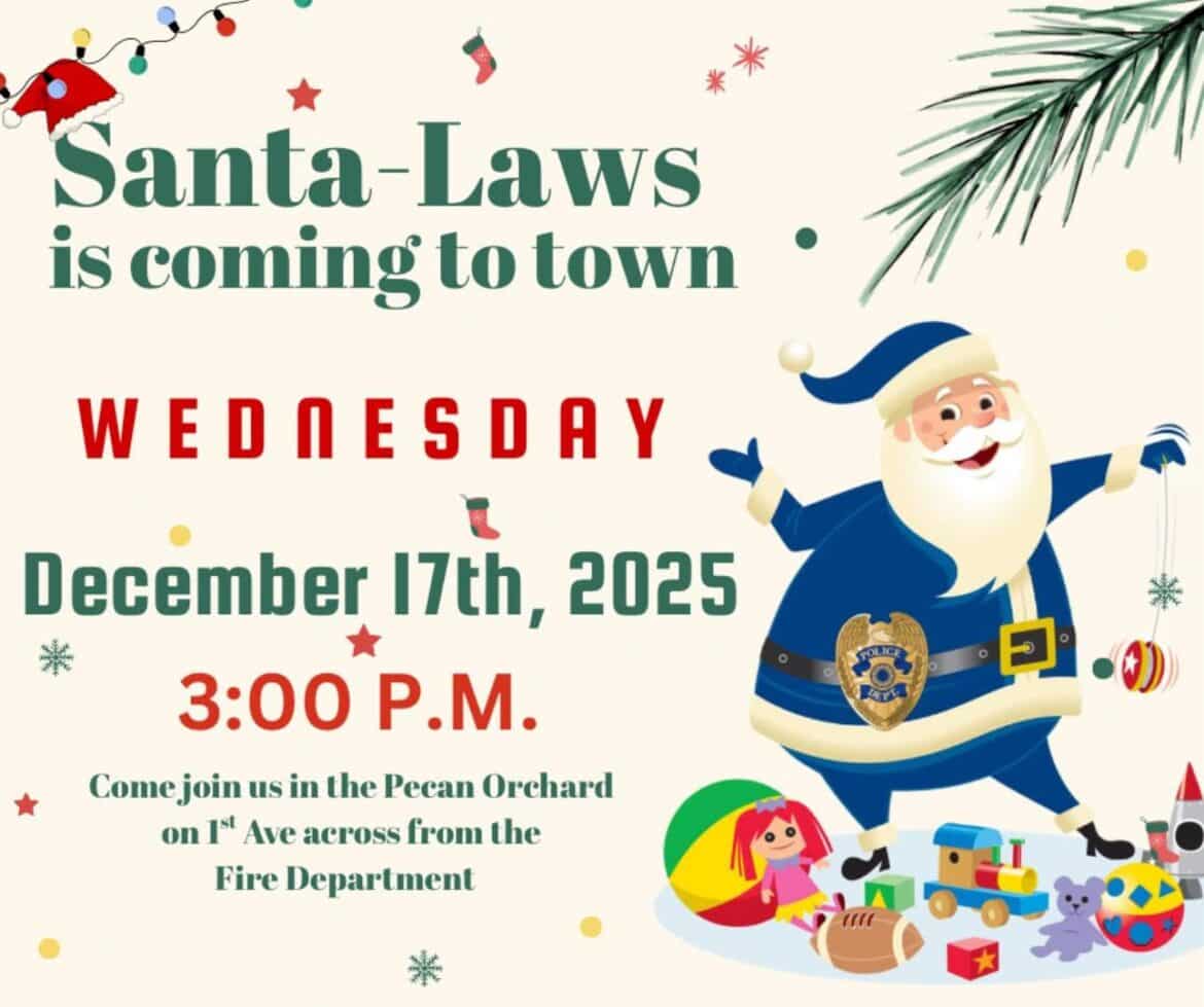 The Eclectic Police Department will host its 5th annual Santa Law Day on December 17, 2025, at 3:00 PM. The event will be held at the Town Pecan Orchard, across from the Eclectic Fire Department on First Avenue.