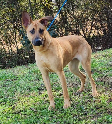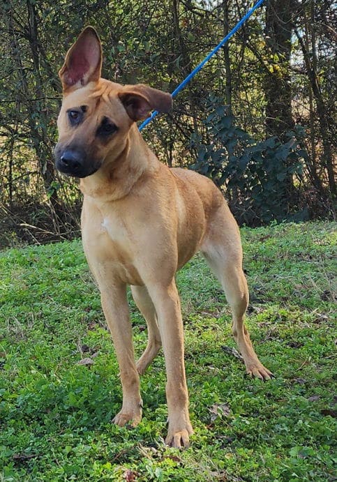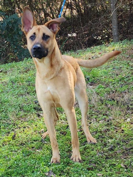 Mercy is a one-year-old female Black Mouth Cur, about 60 lbs. She came to us when her owner was unable to keep her. She is an incredibly sweet lady, great with other dogs, very loving and also playful.
