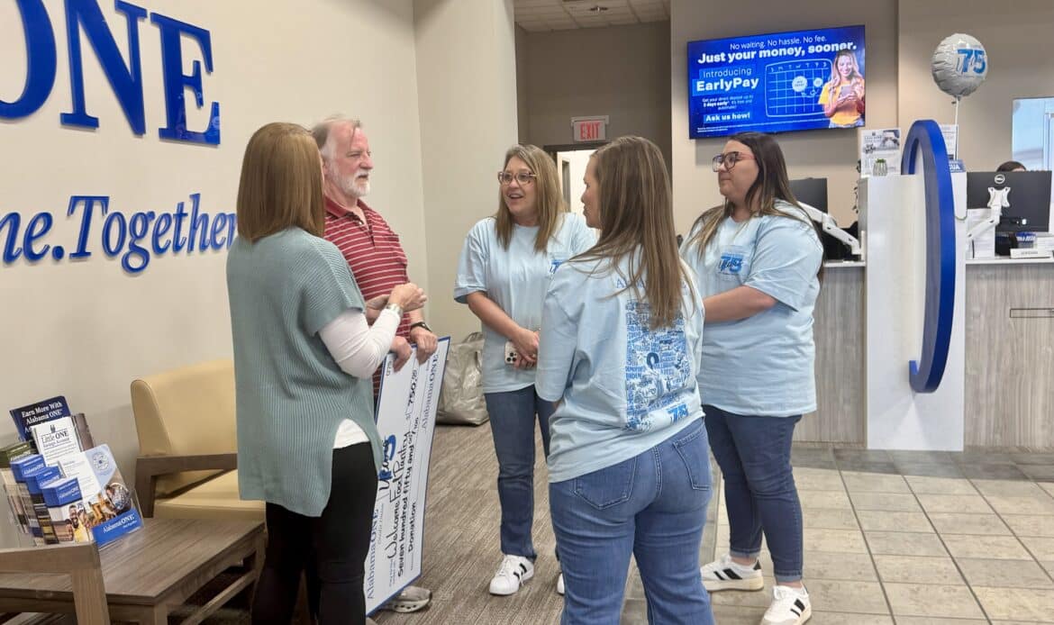 The 75-year celebration will continue throughout this year and is being celebrated with t-shirts for purchase and door prizes that you can enter for at your local branch. All proceeds from shirt sales go back to Credit Union Advocacy. The Millbrook branch is located at 3390 AL-14 in Millbrook and was the kick-off location for this year’s celebrations.