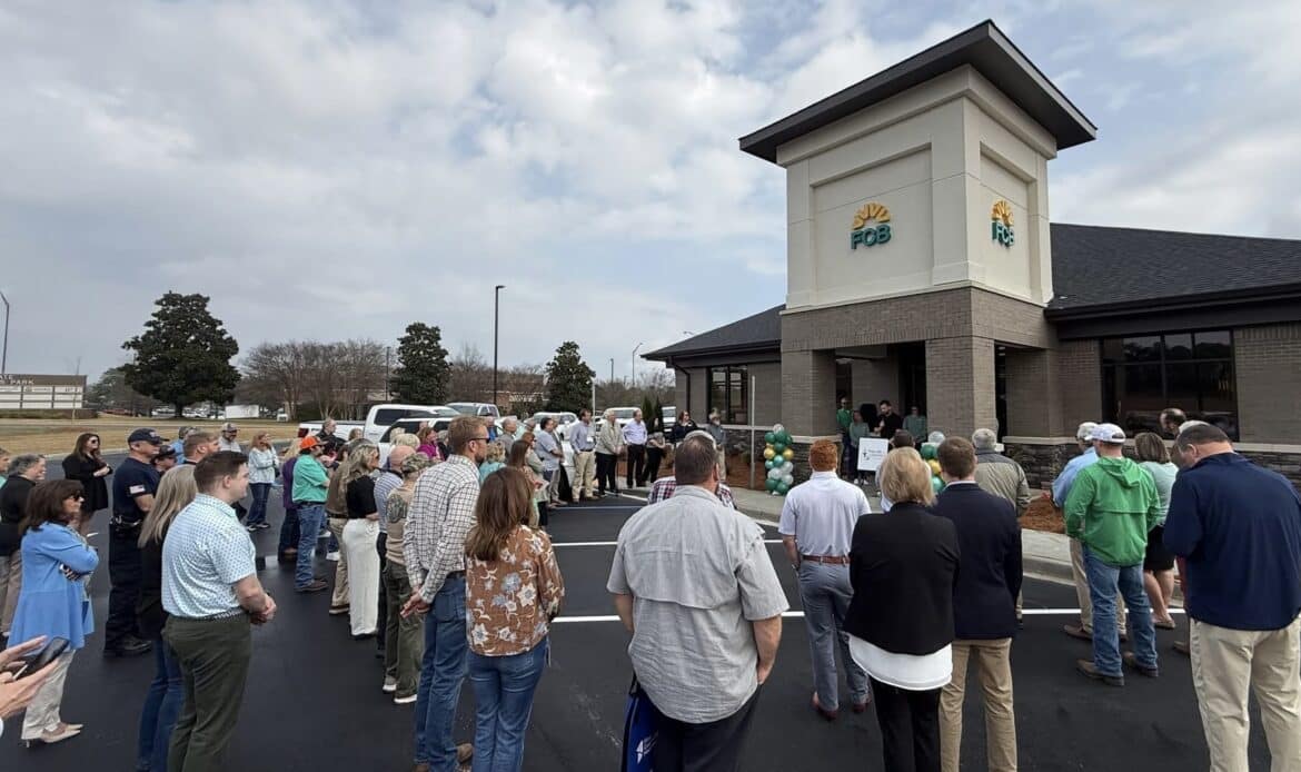 First Community Bank is open for business at 710 Commercial Parkway in the Interstate Business Park. The branch had a soft opening Monday, February 2, 2026. The official grand opening and ribbon-cutting celebration last week marked an important milestone for the bank with historical significance as the first financial institution and the first ribbon-cutting in the Town of Pine Level.
