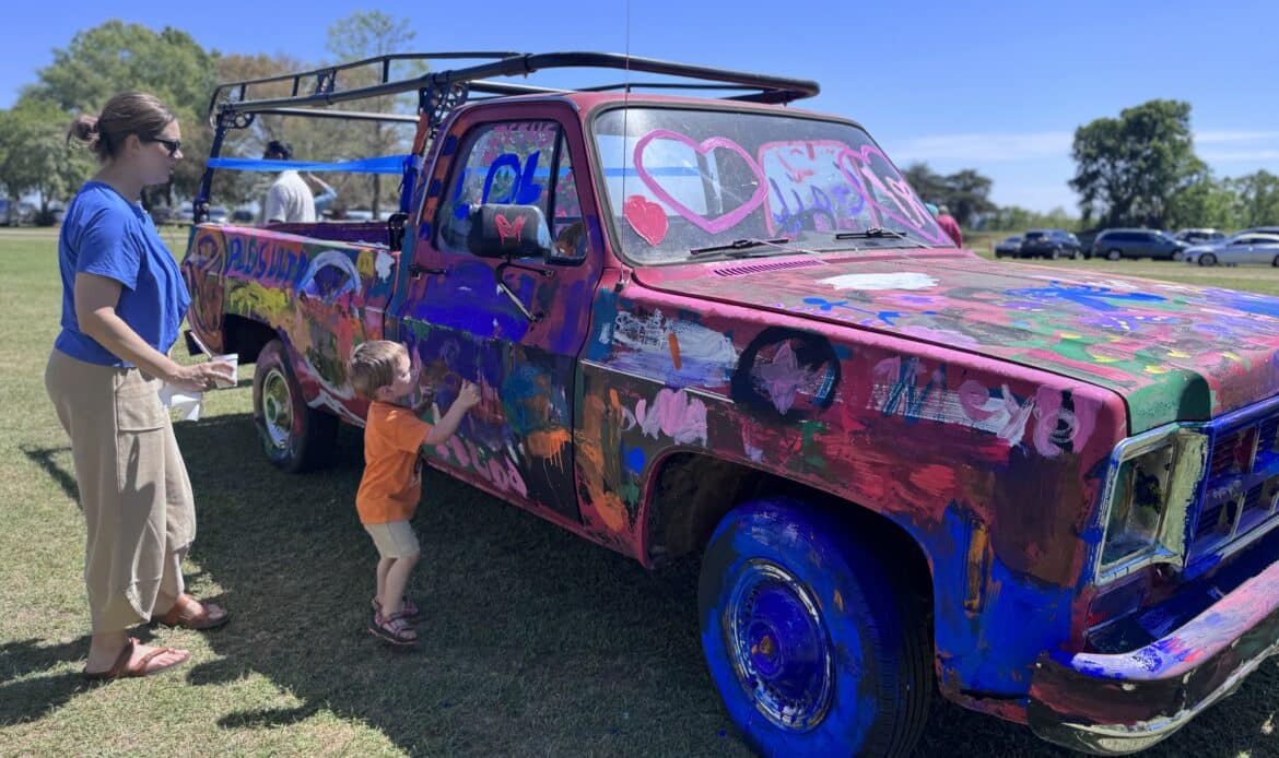 Festivalgoers enjoyed a variety of attractions throughout the park, including food vendors, local artists and craft booths. Children’s activities were a central part of the event, with opportunities to paint a truck provided by the Prattville Art Guild, as well as rock painting, record painting, chalk boards shaped like flowers, painted masks and decorated themed t-shirts. Inflatables and games were also available for children to enjoy.