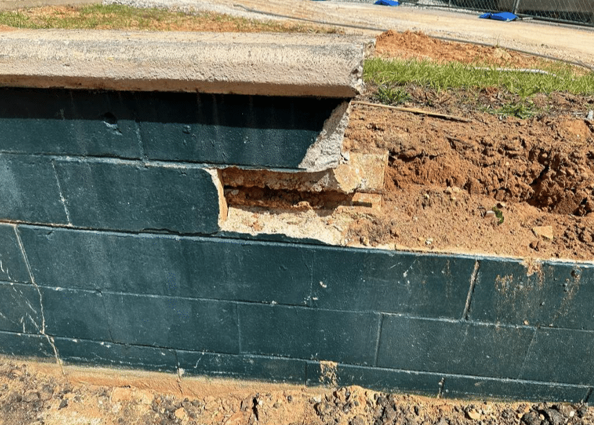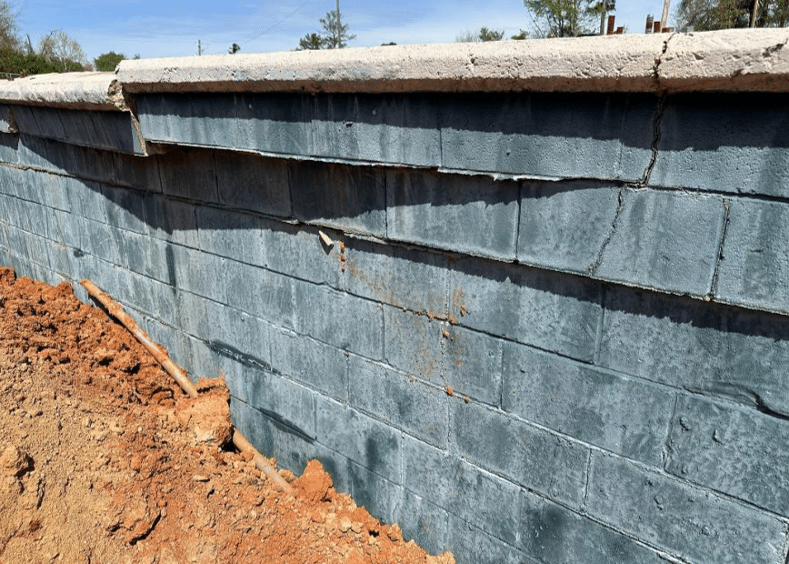 Following a structural analysis of the wall, Day Structures found its overall condition to be poor and unstable due to excessive outward rotation, water buildup behind the walls, cracking in the mortar joints, and displacement at the base of the walls.